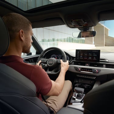 Thanks to its large interior, the luggage compartment and rear of the Audi A5 Sportback offer plenty of space for leisure and family. The ambience is visually emphasised by horizontal design elements in the interior, the user-friendly centre console, the trim in the door rail in gloss black and the fine quality of the materials. Customise your vehicle further with interior design selection⁷ and the S line⁷ equipment line. The state-of-the-art infotainment platform and the ambient lighting package plus⁷ lend the interior of the Audi A5 Sportback its progressive elegance.