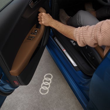 Emphasises the sporty character of the Audi A5 Sportback: competition edition plus⁷. With striking design elements in black as well as with the black styling package plus and S line. The ambient lighting package plus and entry LED with logo projection provide an atmospheric lighting design.
